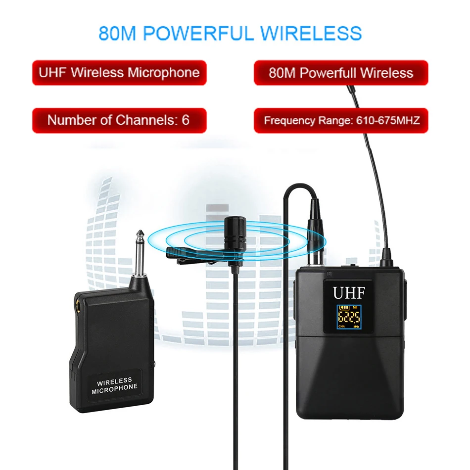 صور من ميكروفون المهنية مكبر صوت لا سلكي ذو تردد فوق العالي نظام Lavalier طية صدر السترة الميكروفون استقبال + الارسال ل كاميرا مسجل ميكروفون