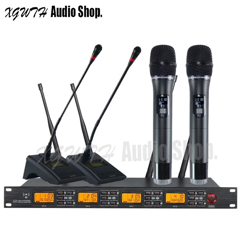 استعارات من 4x60 قناة الرقمية ميكروفون لاسلكي نظام UHF مع الصوت 2 معقوفة مؤتمر 2 كاريوكي يده الديناميكي قلبي Mic