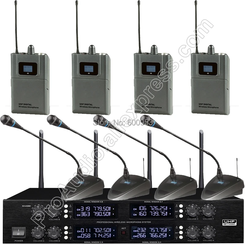 أرغب في شراءمعلومات اضافية Micwl uhf تردد قابل للتعديل 4 beltpack كليب 4 منضدية معقوفة مؤتمر نظام الميكروفون اللاسلكي الرقمي